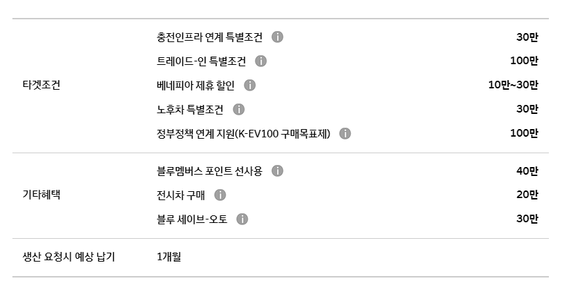 이외에도 충전 인프라, 노후차, 트레이드 특별 조건을 통해서도 추가 할인이 가능합니다.