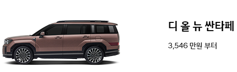 디 올 뉴 싼타페 가솔린 모델의 납기일정은 매우 짧습니다. 또한, 싼타페 가솔린 일부 차종은 재고차가 다수 존재합니다.