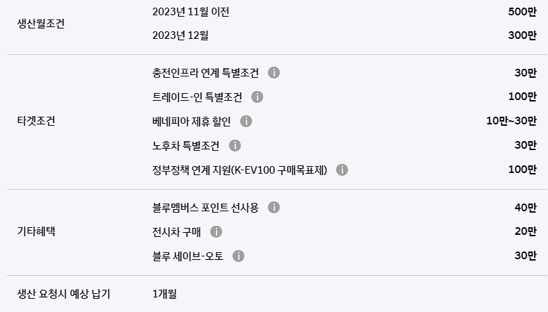 이외에도 충전 인프라, 노후차, 트레이드 특별 조건을 통해서도 추가 할인이 가능합니다.