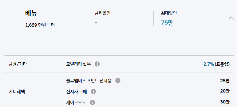 베뉴의 경우 공통 기본 할인이 제공되지 않습니다.