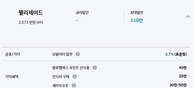 2021. 7월 팰리세이드 판매조건, 구매 혜택, 프로모션