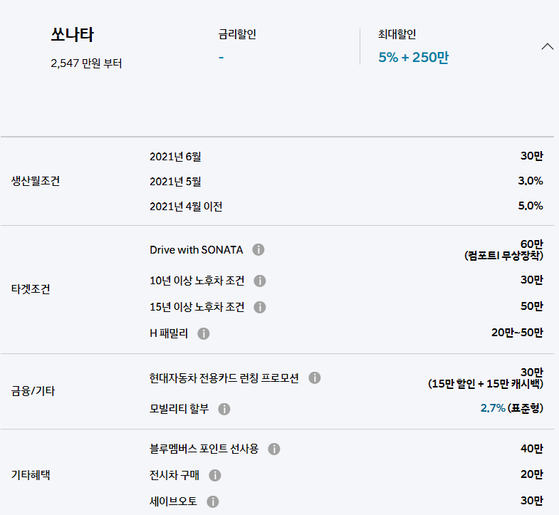 2021. 7월 쏘나타 판매조건, 구매 혜택