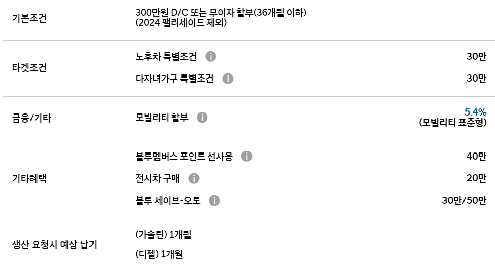 팰리세이드 9월 판매조건, 구매혜택, 납기일정