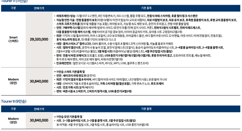 29,320,000원으로 11인승 모델의 시작 가격이 정해졌습니다.