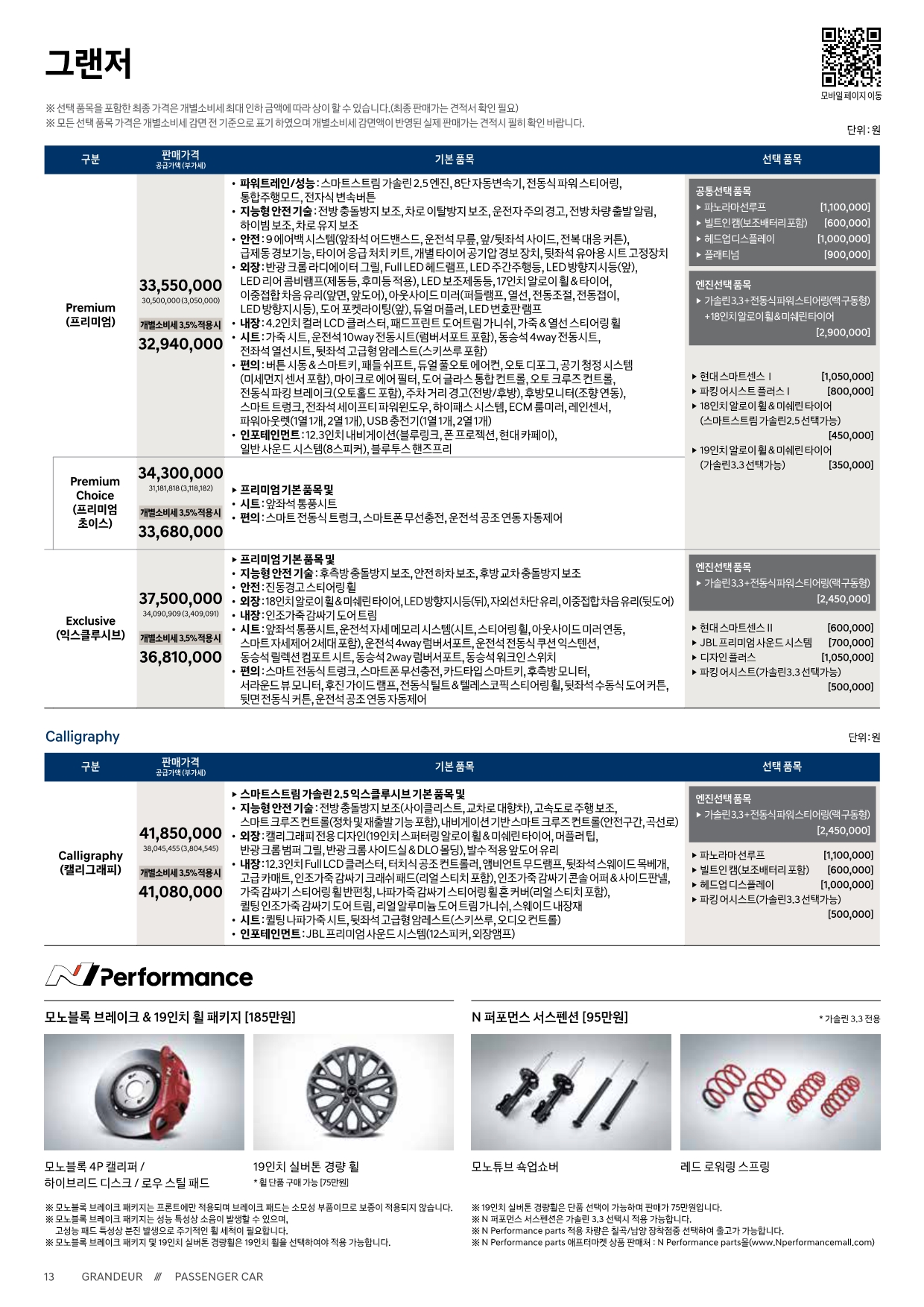 • 외장 : 캘리그래피 전용 디자인(19인치 스퍼터링 알로이 휠 & 미쉐린 타이어, 머플러 팁,