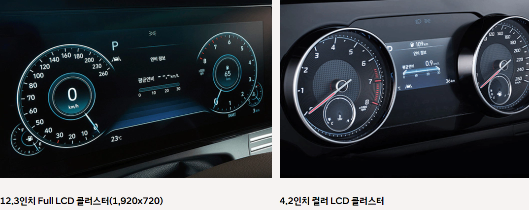 • 내장 : 12.3인치 Full LCD 클러스터, 터치식 공조 컨트롤러, 앰비언트 무드램프, 뒷좌석 스웨이드 목베개,