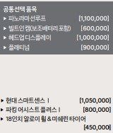 전좌석 열선시트, 뒷좌석 고급형 암레스트(스키쓰루 포함)
