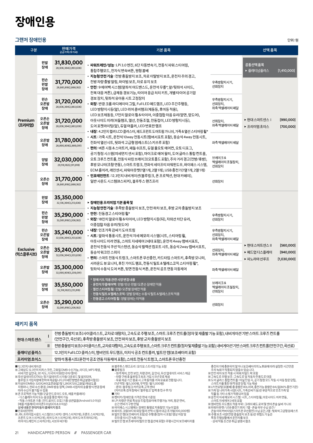 • 편의 : 스마트 전동식 트렁크, 스마트폰 무선충전, 카드타입 스마트키, 후측방 모니터,