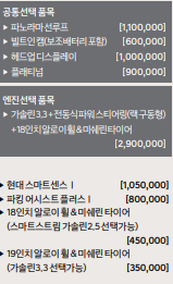▶ 스마트스트림 가솔린 2.5 익스클루시브 기본 품목 및