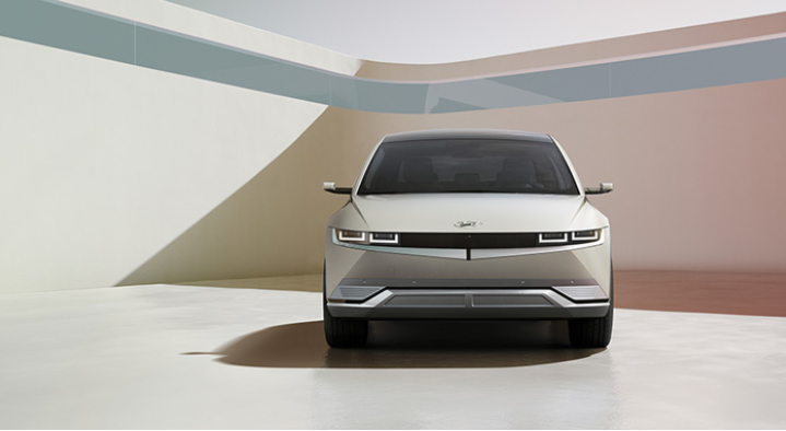 아이오닉 5 외관을 살펴보면, 전면의 경우 좌우로 얇고 기다라며 각진 헤드램프가 인상 깊습니다.