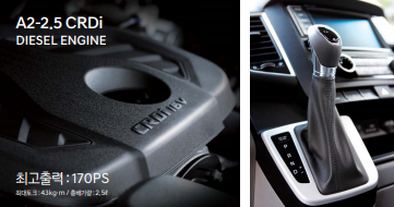 파워트레인 : 170마력 43 토크 A2.5 엔진, 8단 자동변속기