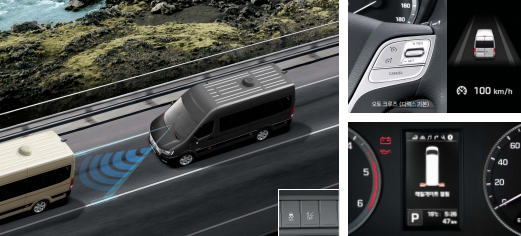 안전 : 전자식 디스크 패드 인디케이터, 오토 크루즈, 급제동 경보시스템(ESS)