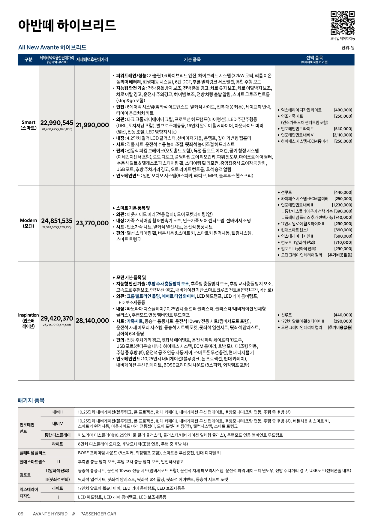 [현대] 2021 아반떼 하이브리드 옵션, 가격, 가격표 정리