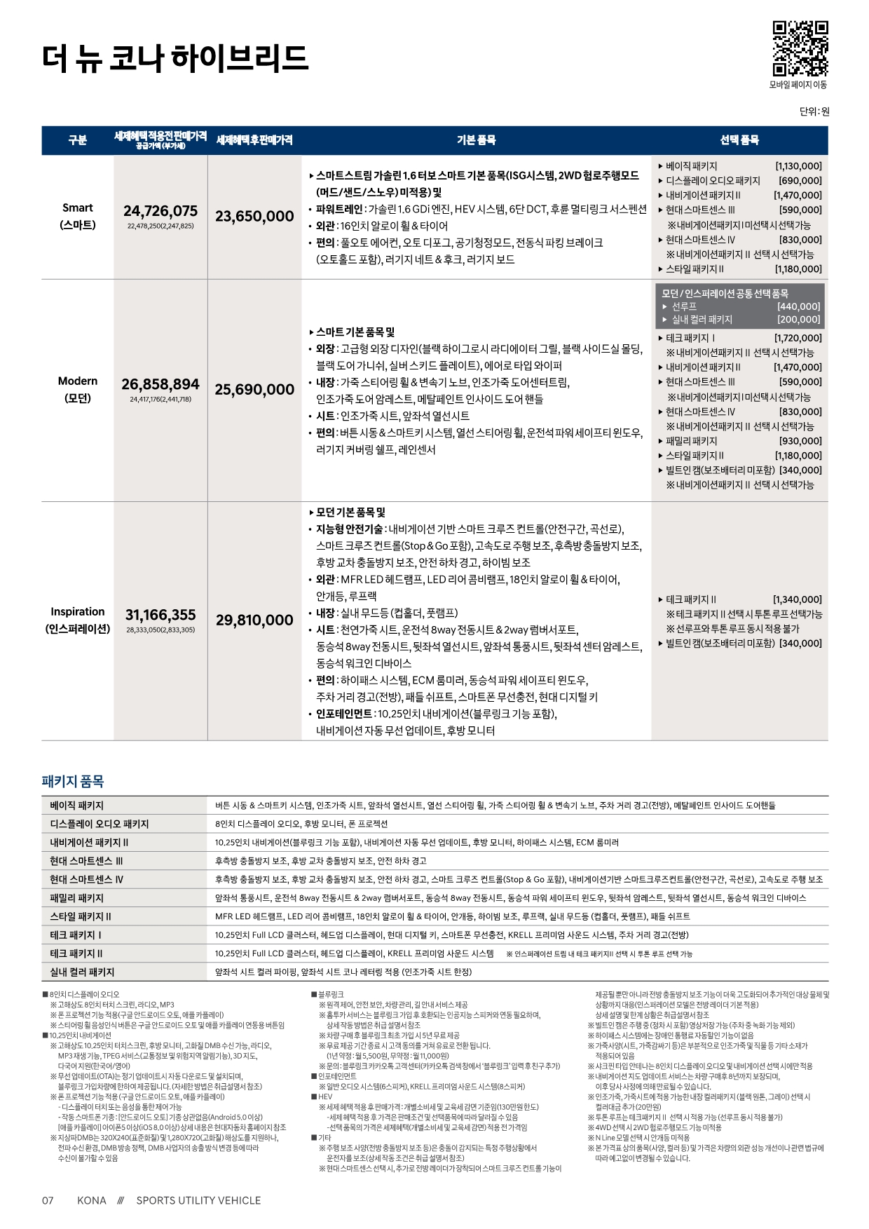 [현대] 2021 코나 하이브리드 옵션 사양, 가격, 가격표