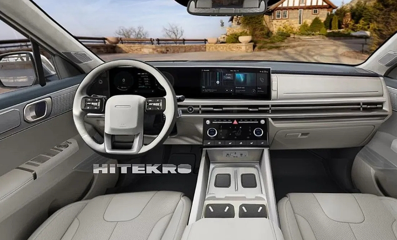 싼타페 풀체인지 모델 실내 디자인은 그랜저와 유사합니다.