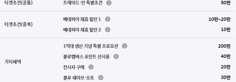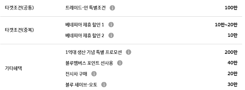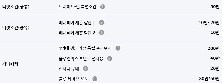 트레이드 인 특별 조건 100만원 할인, 베네피아 제휴 할인 20만 원 등의 혜택도 동일하게 적용 가능합니다.