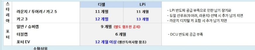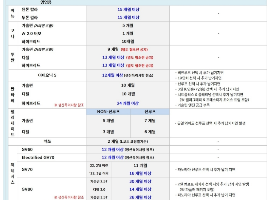 현대자동차 11월 납기 일정, 출고 대기기간