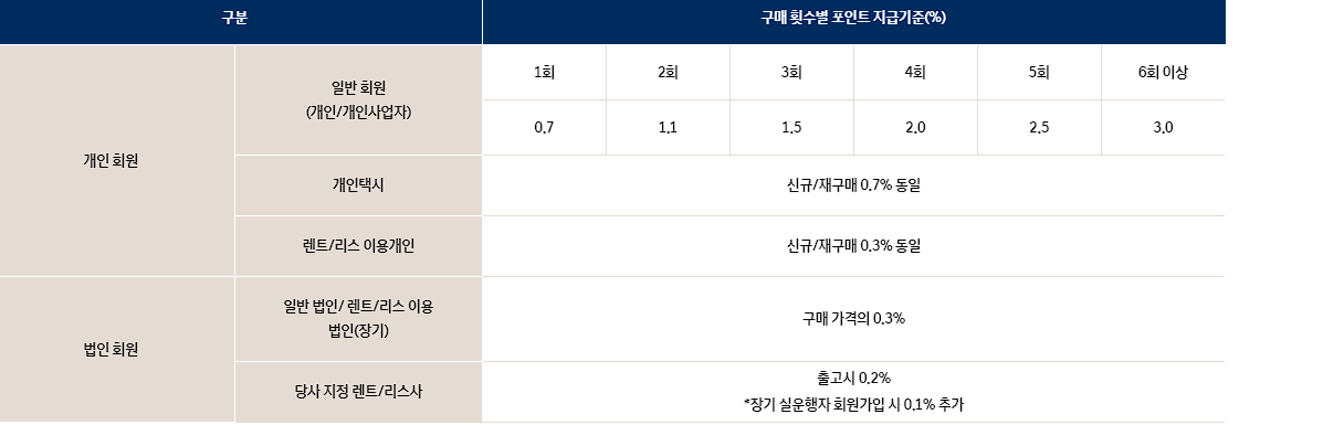 과거 현대차 구매 횟수에 따라서 차등 지급되기에 잘 파악하시어 현명한 차량 구매 하시길 바랍니다.