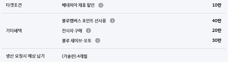 베네피아 제휴 할인은 새롭게 선보이는 현대차 구매 혜택입니다. 베네피아 제휴 할인은 올해 안 해 베네피아 포인트 전환 및 계약 완료 고객을 대상으로 제롱 되는 할인이며, 10만 원의 할인 혜택이 제공됩니다.