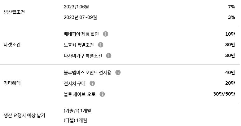 노후차 특별조건, 다자녀 가구 특별조건을 통해 각각 30만 원의 추가 할인도 가능합니다.