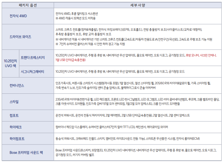 구성의 경우 가솔린과 같고 엔진 부분에서 차이가 있습니다.
