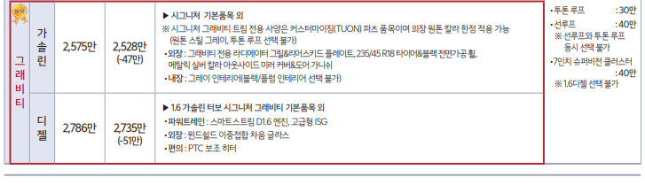 디젤 각 트림은 가솔린 트림을 참조하시고