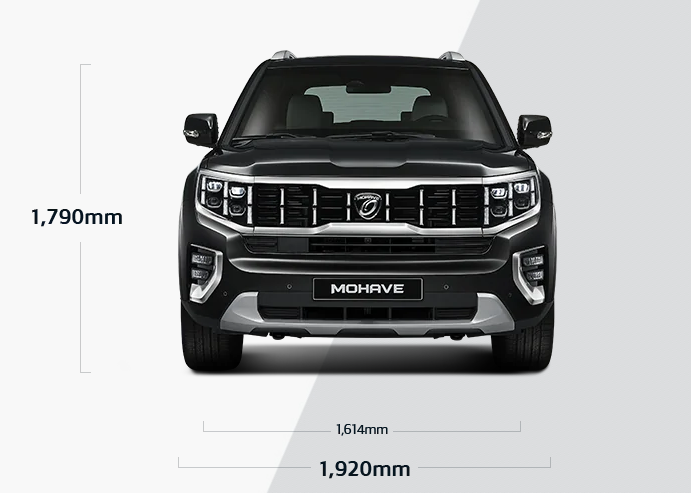 모하비 차체는 전장 4930mm, 전폭 1920mm, 전고 1790mm입니다.