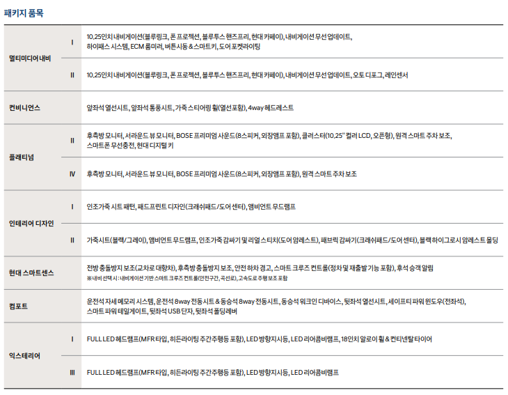 투싼 하이브리드 인스퍼레이션 선택옵션