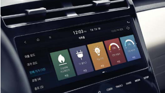 투싼 하이브리드 역시 물리적인 버튼보다 터치식 화면을 적용하여, 미래지향적 모습을 보여줍니다.