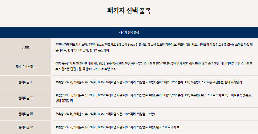 투싼 n 라인 패키지 선택 옵션 구성 품목