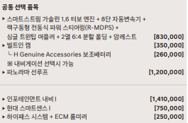 쏘나타 프리미엄 플러스 기본 품목 포함