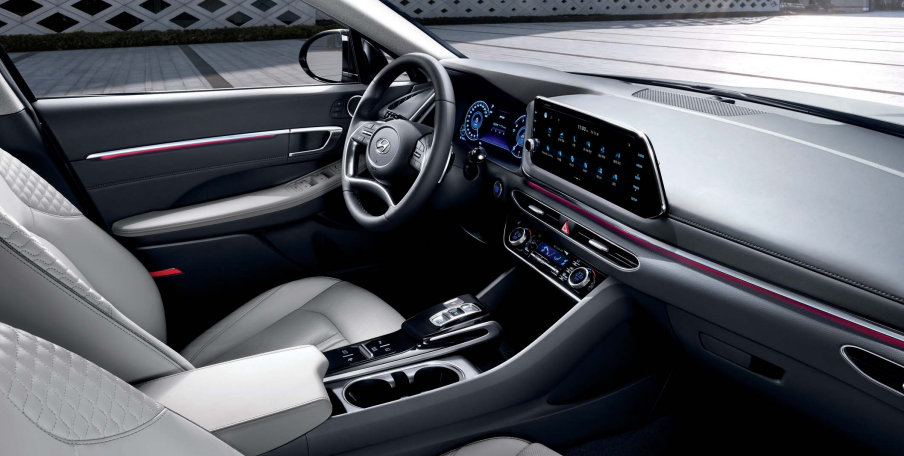 2021 소나타 센슈어스 실내 내장은 카멜, 블랙, 그레이 투톤, 네이비 등 총 4가지 컬러로 적용됩니다.