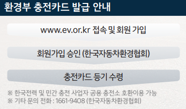 공용 충전기 충전카드를 신청 후 발급해야 합니다.