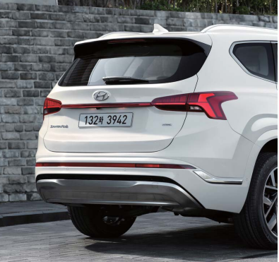중형 suv 인 만큼 차체를 높아 보이며 suv 스러운 느낌을 한층 더 보여주는 신형 싼타페 후면 모습입니다.
