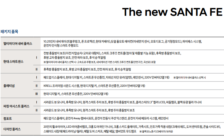 신형 싼타페 어떠한 사양이 존재?