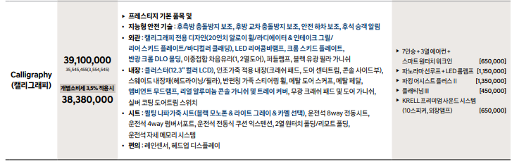 싼타페 프레스티지 품목 포함 이외