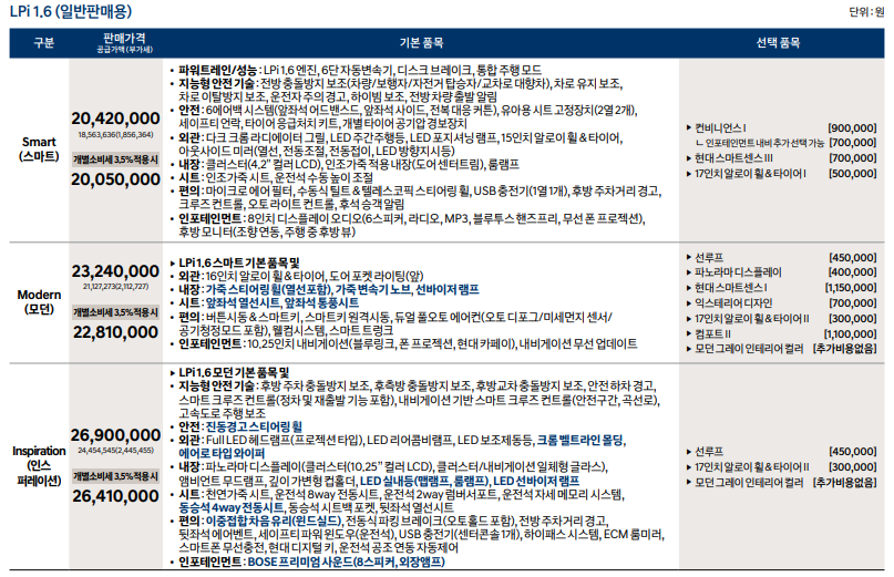 아반떼 lpi 1.6 가격표