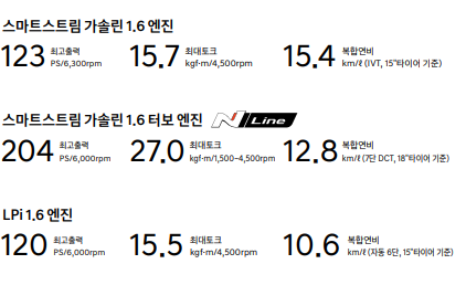 아반떼 출력, 연비 제원 살펴보기