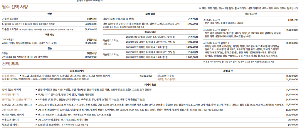 물론 기본 사양에 엔진, 추가 옵션을 선택하면 가격은 더욱 올라가겠죠,