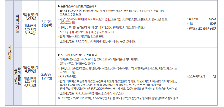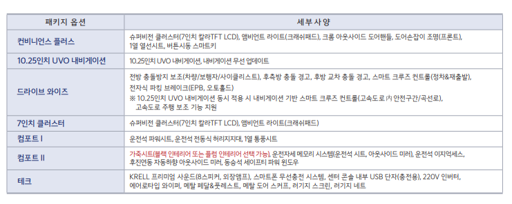 각 트림별로 가격, 구성 옵션 품목에 대하여 자세히 알아보겠습니다.