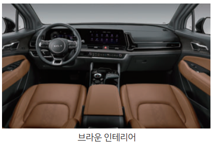 2022 신형 스포티지 색상은 블랙, 브라운, 그레이로 3가지 디자인 실내 모습이 선택 가능합니다.