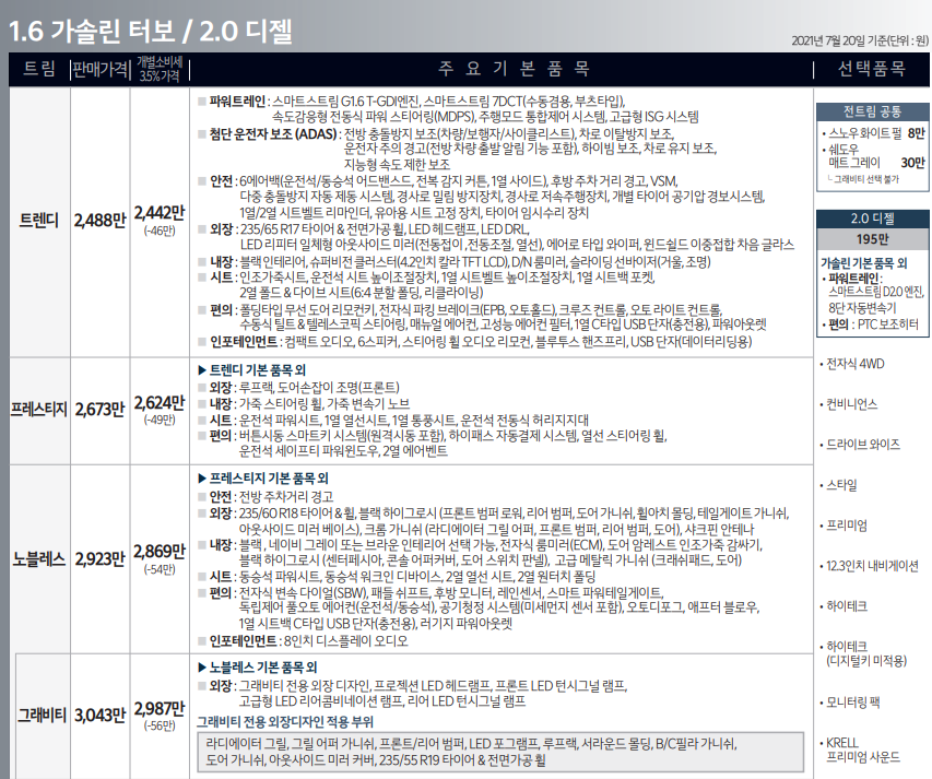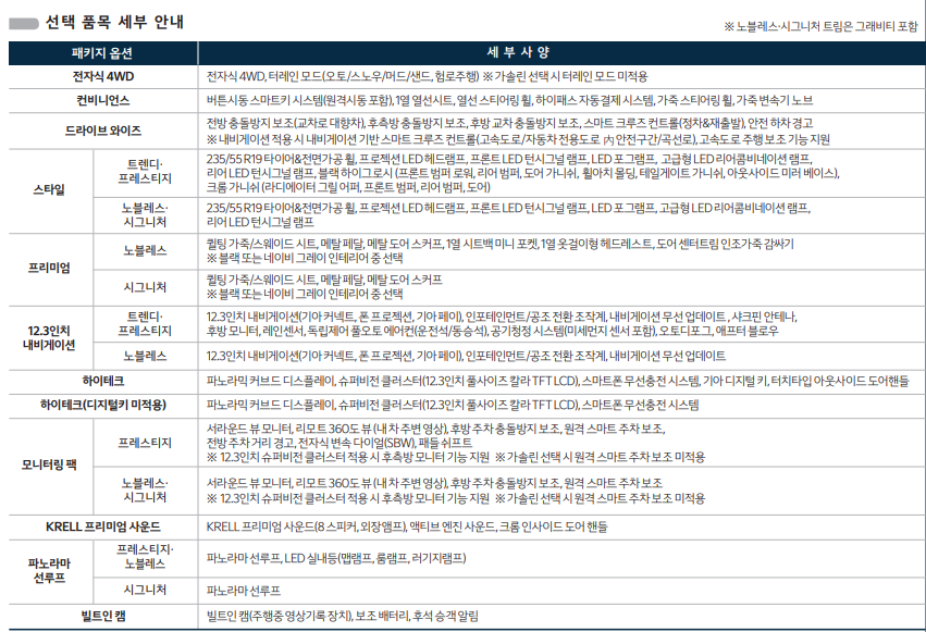 트렌디에서 아쉬웠던 항목들이 대거 포함됨으로써 주력 모델, 판매 트림이 될 것으로 보입니다.