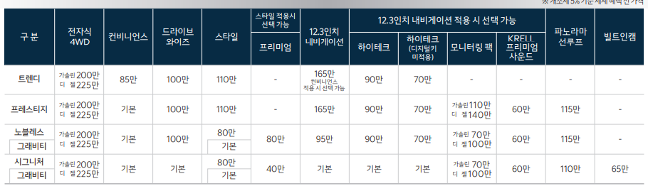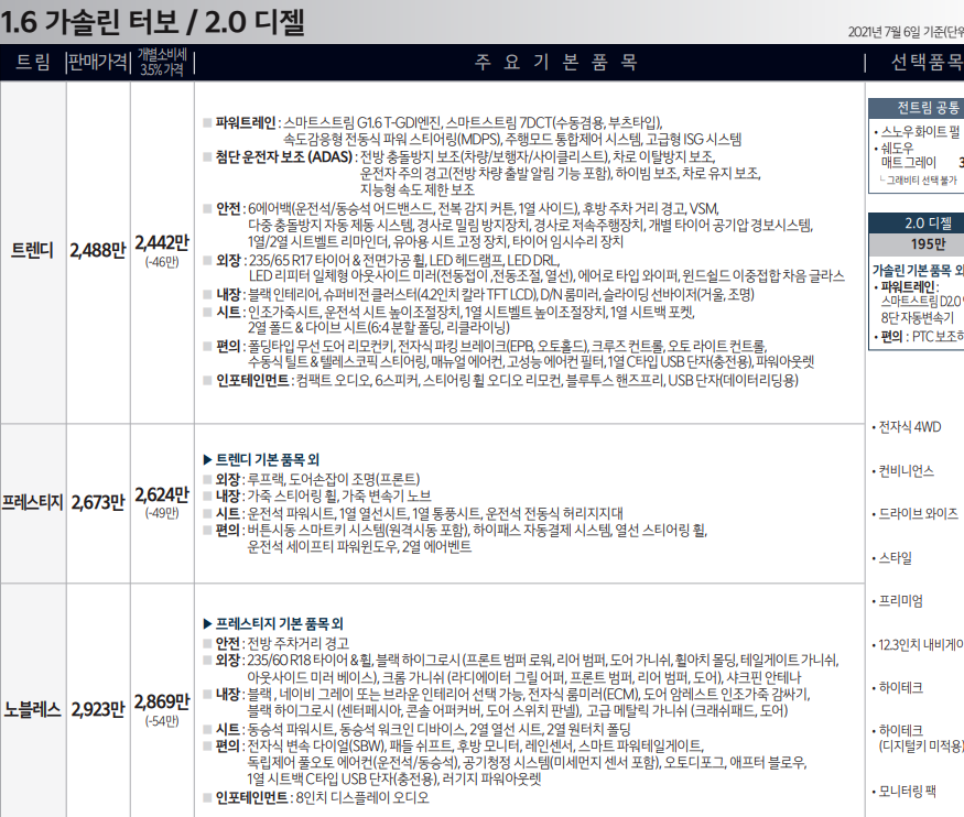 스포티지 풀체인지 노블레스 기본품목 포함 이외