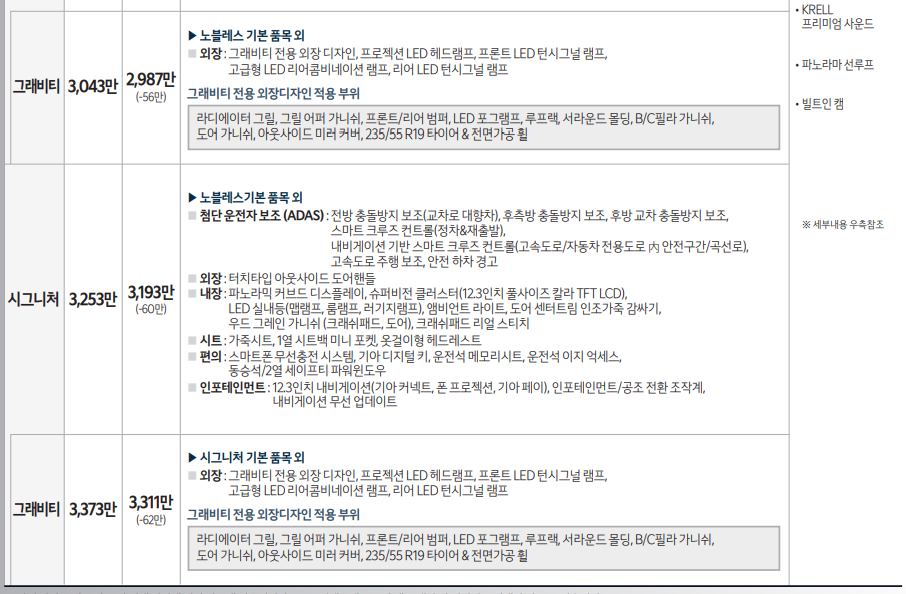 스포티지 풀체인지 시그니처 기본 품목 포함 이외