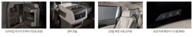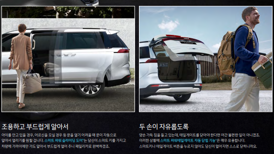 자동 슬라이딩 도어, 트렁크 테일게이트를 적용하여 자유롭고 손을 쓰지 않고도 차량 이용이 가능하도록 되어 있습니다.