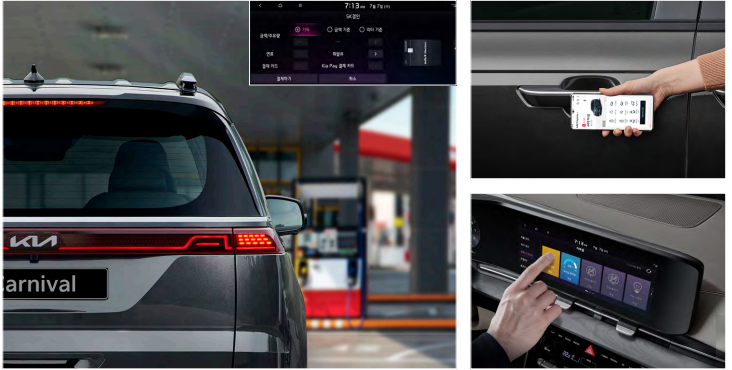 기아 카페이, 디지털키, 카투 홈을 적용하여 iot가 카니발과 접목되어 보다 편리하게 결제나 차량 제어가 가능합니다.