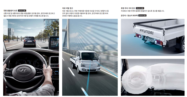 포터 2는 상용차임에도 불구하고 많은 안전, 편의 관련 옵션들이 포함되어