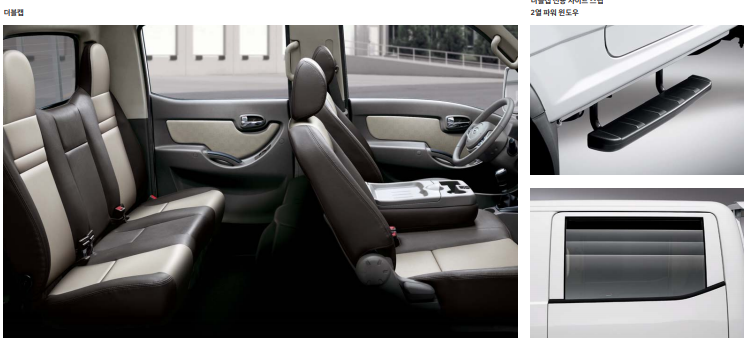• 외관 : 자외선 차단 유리(앞면), 선셰이드 적용 앞면 유리, 적재함 브림 커버