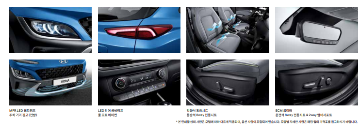 외관이나 사양 측면에서 일반 코나와 다소 차이가 있습니다.