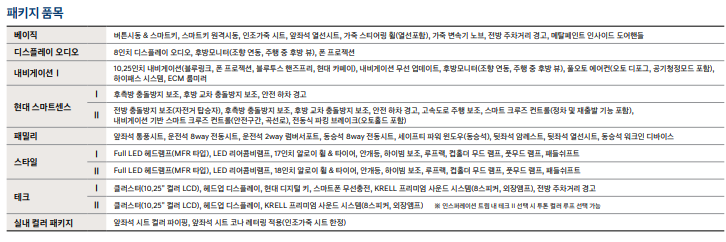 각 트림별 옵션 구성, 가격을 한번 알아봅니다.